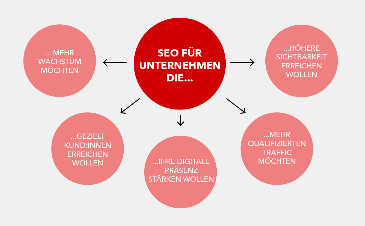 Eine SEO-Firma spezialisiert sich auf die Optimierung von Websites und Online-Shops, um unter relevanten Suchbegriffen bei Google & Co. möglichst weit oben zu ranken. Typische Maßnahmen einer SEO-Firma umfassen: