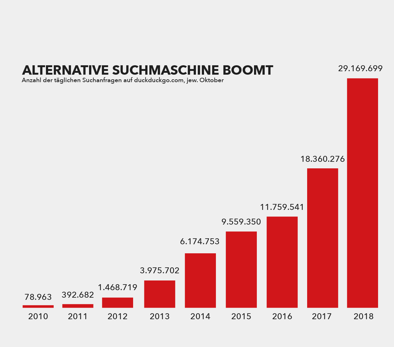 Vielmehr ist es eine Frage des Datenschutzes und dem persönlichen Empfinden seitens der User. Trotzdem sind wir bereits den Luxus gewohnt, die besten Suchergebnisse angezeigt zu bekommen, weshalb Google es anderen Suchmaschinen vergleichsweise schwer macht, auf diesem Markt groß und beliebt zu werden. Wie ist der Stand bei Duckduckgo? Hat die Suchmaschine überhaupt das Zeug dazu, eine ernst zu nehmende Konkurrenz für das milliardenschwere Google zu werden?