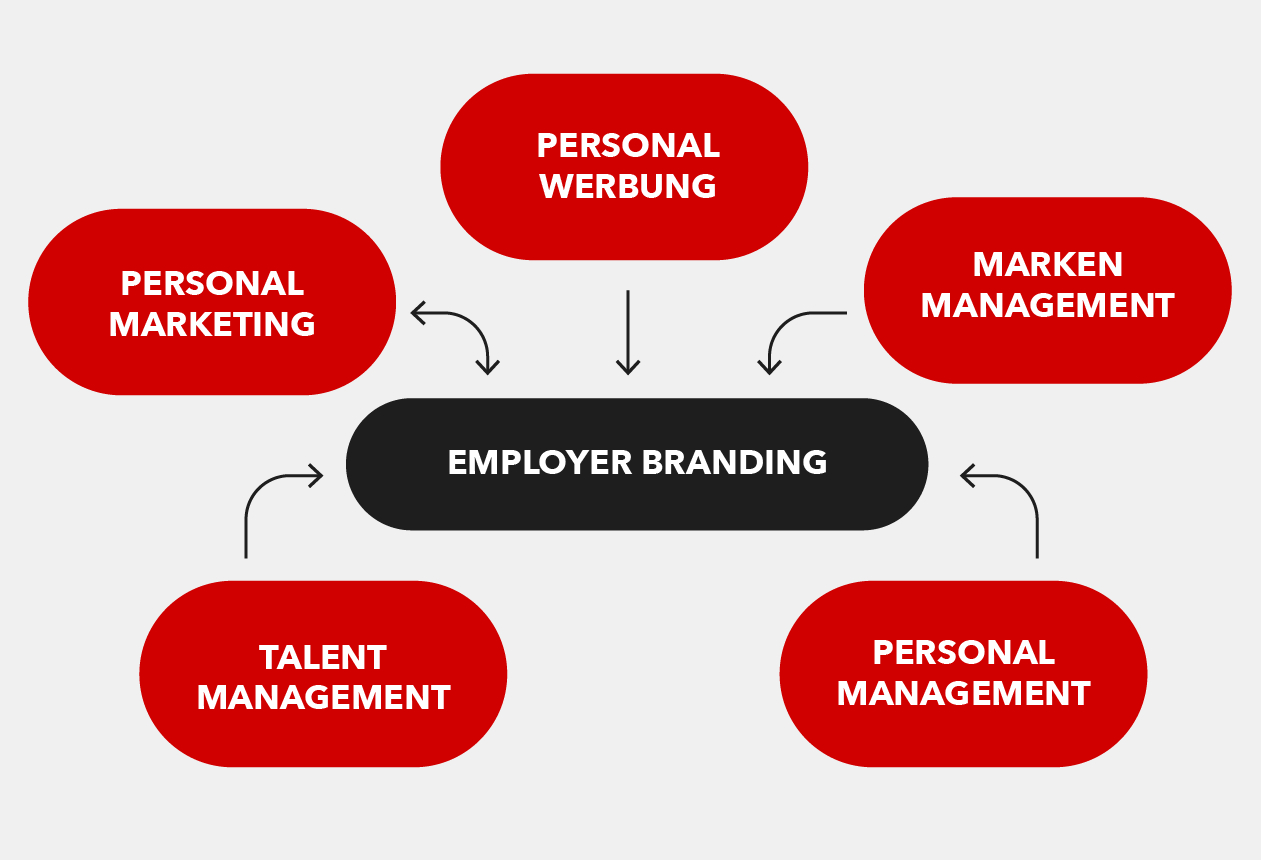 Employer Branding beschreibt umfassende Maßnahmen, Ihr Unternehmen und seine Strukturen als Arbeitsplatz besonders attraktiv zu gestalten und seine Vorteile angemessen zu repräsentieren. Besonders bei der Personalbeschaffung kann dies sehr nützlich sein; neben reiner Recruiting-Maßnahmen, wie sie häufig im Personalmarketing durchgeführt werden, liegt der Fokus beim Employer Branding insbesondere auf der Ausarbeitung von Stärken und der Beseitigung von Schwächen als Arbeitgeber sowie dem langfristigen Erhalt und der Beschaffung geeigneter und motivierter Arbeitskräfte.