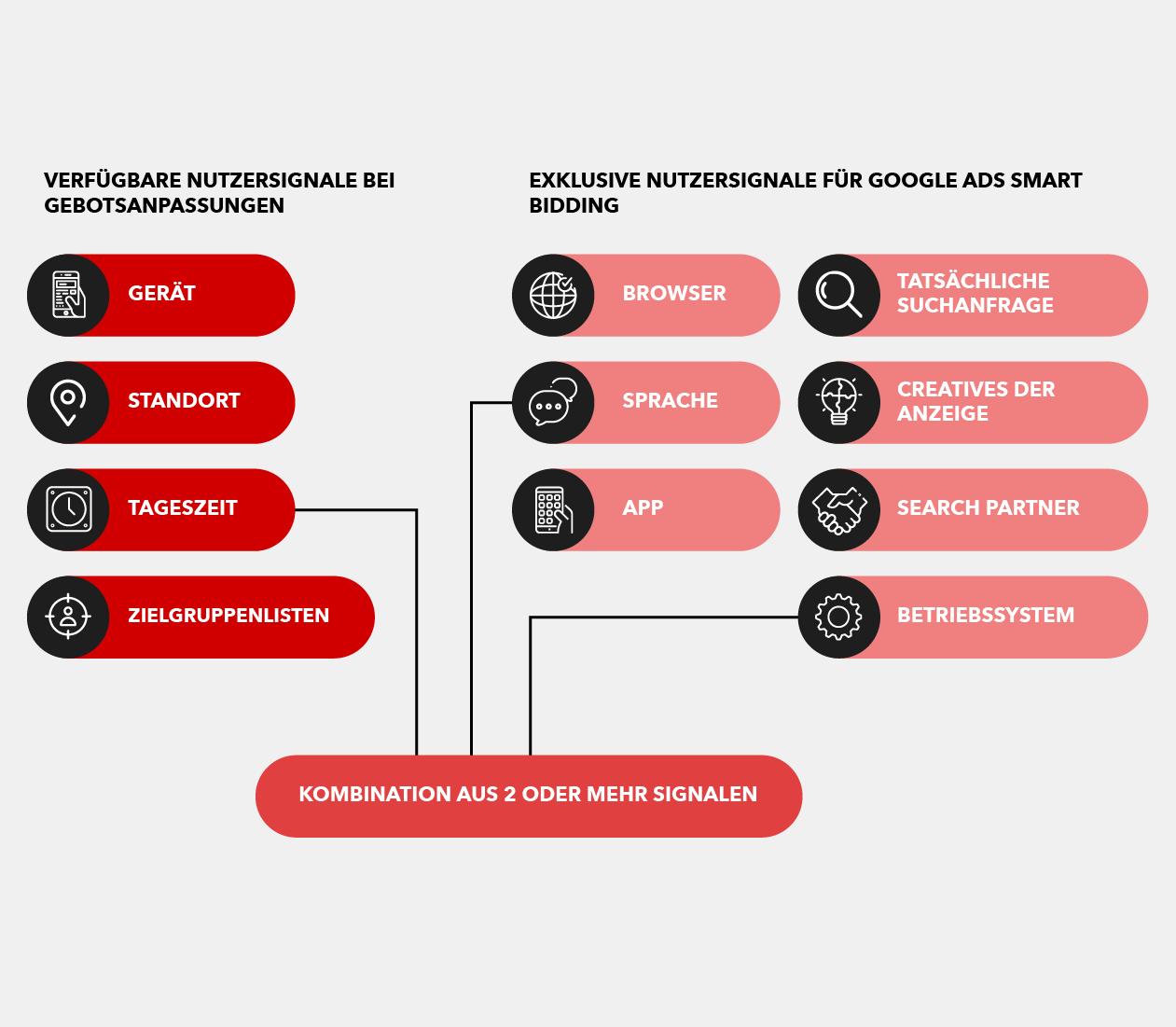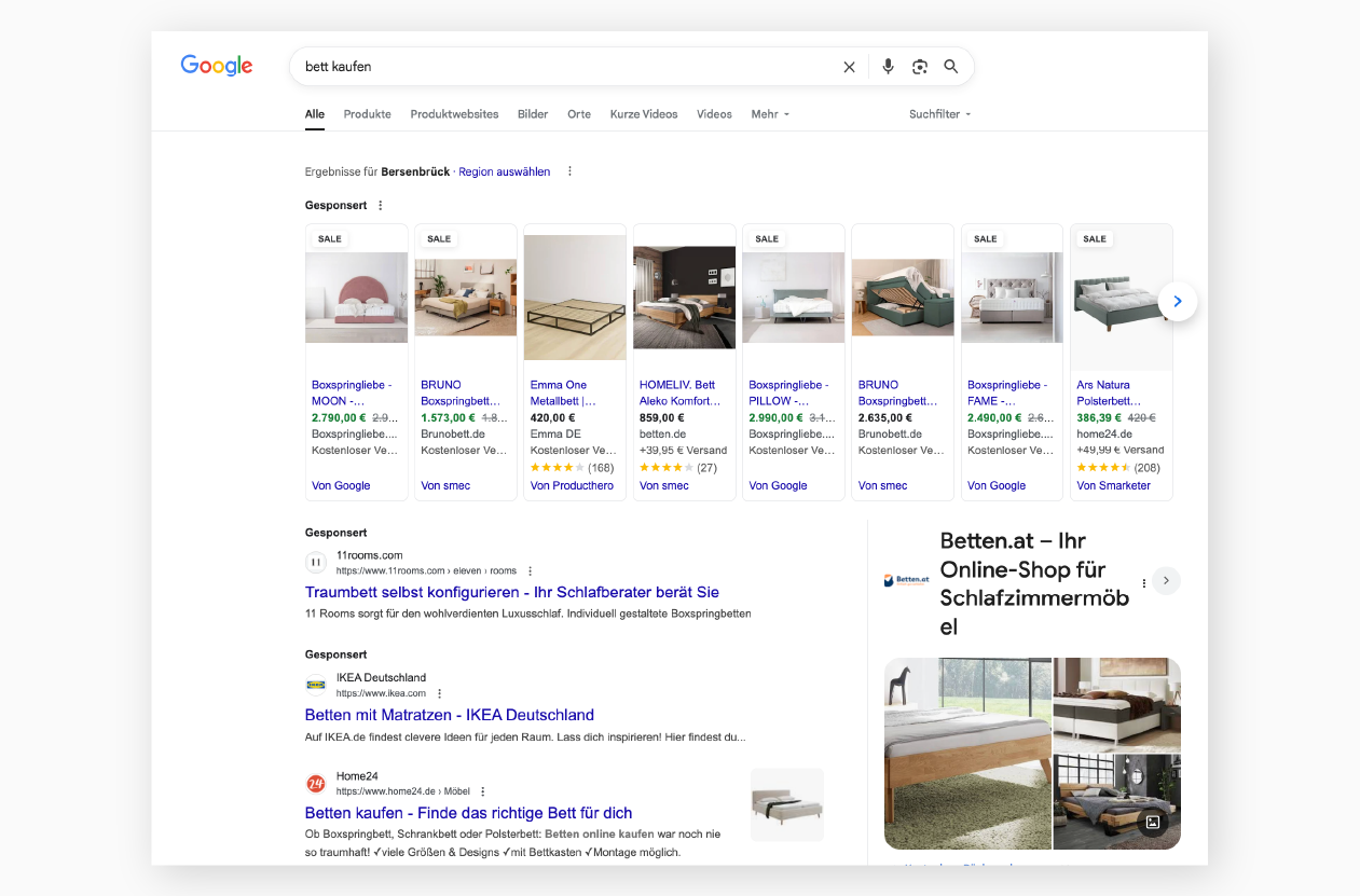 Googles Smart-Bidding-System unterstützt Gebotsstrategien leistungsstark und KI-gestützt. Du kannst deine Kampagnen automatisch auf Ziele wie Conversions oder Umsatz (ROAS) optimieren. Gleichzeitig bleibt es dir überlassen, ob du dich voll auf die KI verlässt oder Gebote manuell steuerst. Kombiniert mit KI-SEO eröffnen sich neue Möglichkeiten, Budgets effizienter einzusetzen und Werbeergebnisse präziser zu steuern.