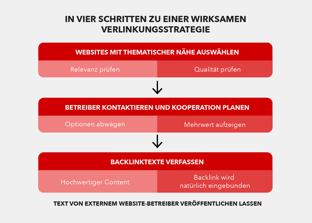 Das Ergebnis der Google-Suche für deine Website beeinflussen einerseits interne Verlinkungen. Sie schaffen klare Strukturen, verbessern die Navigation für Nutzer:innen auf deiner Seite und helfen Google dabei, alle Seiten effizient zu crawlen. Gleichzeitig leiten wir Linkkraft (Linkjuice) auf deine wichtigsten Seiten weiter. Damit deine Website wirklich ganz vorn bei der Google-Suche auftaucht, braucht es aber auch sogenannte Backlinks. Die externen Verlinkungen lassen dich vertrauenswürdig erscheinen, denn sie wirken wie Empfehlungen von anderen.