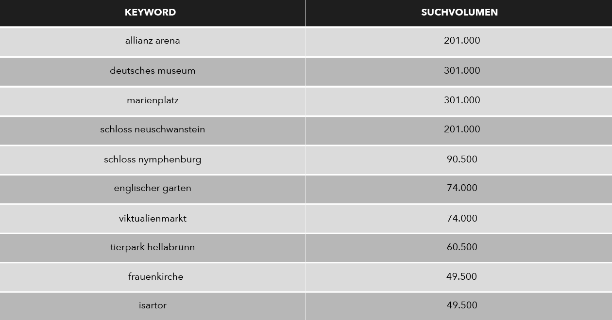 In München wird täglich nach Hotspots gesucht – vom Marienplatz über die Allianz-Arena bis zum Schloss Nymphenburg. Diese Orte ziehen Touristen an und liefern dir starkes lokales Suchvolumen. Unsere SEO-Agentur in München kennt die nötigen Hebel, um deine Website gezielt sichtbar zu machen. Mit sauberer Strategie, passgenauen Keywords und technischer Feinjustierung steigern wir dein Ranking bei regionalen Suchanfragen – damit deine Angebote genau dort auftauchen, wo sie gebraucht und wirklich gefunden werden.