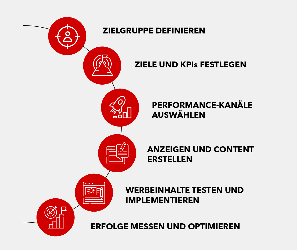 Eine gut ausgearbeitete Performance-Kampagne orientiert sich genau an deinem Business, deiner Zielgruppe und deiner Konkurrenz. Zudem baut sie auf eine kontinuierliche Optimierung: A/B‑Tests, Tracking, Budget-Justierungen und die Anpassung aller Werbemittel. Durch diese Voraussetzungen wird jede Maßnahme effizienter, und du profitierst langfristig von Performance und Umsatz.