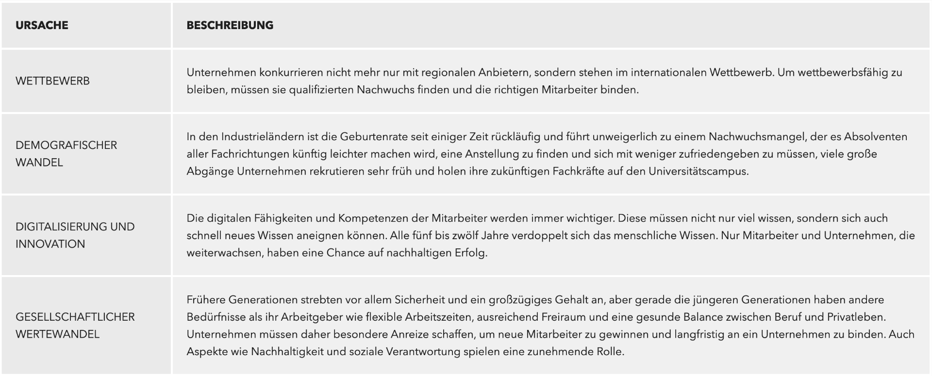 Der Begriff “War for Talents“ ist von Stephen Hawking geprägt und beschreibt den Kampf des Marktes bzw. der Unternehmen um die dünne Schicht von Fachkräften. Es geht also auch um den Wandel von einem Arbeitgeber- zu einem Arbeitnehmermarkt, in dem sich die Jobs praktisch ausgesucht werden können. Was sind die Gründe und Treiber dieses Effekts?
