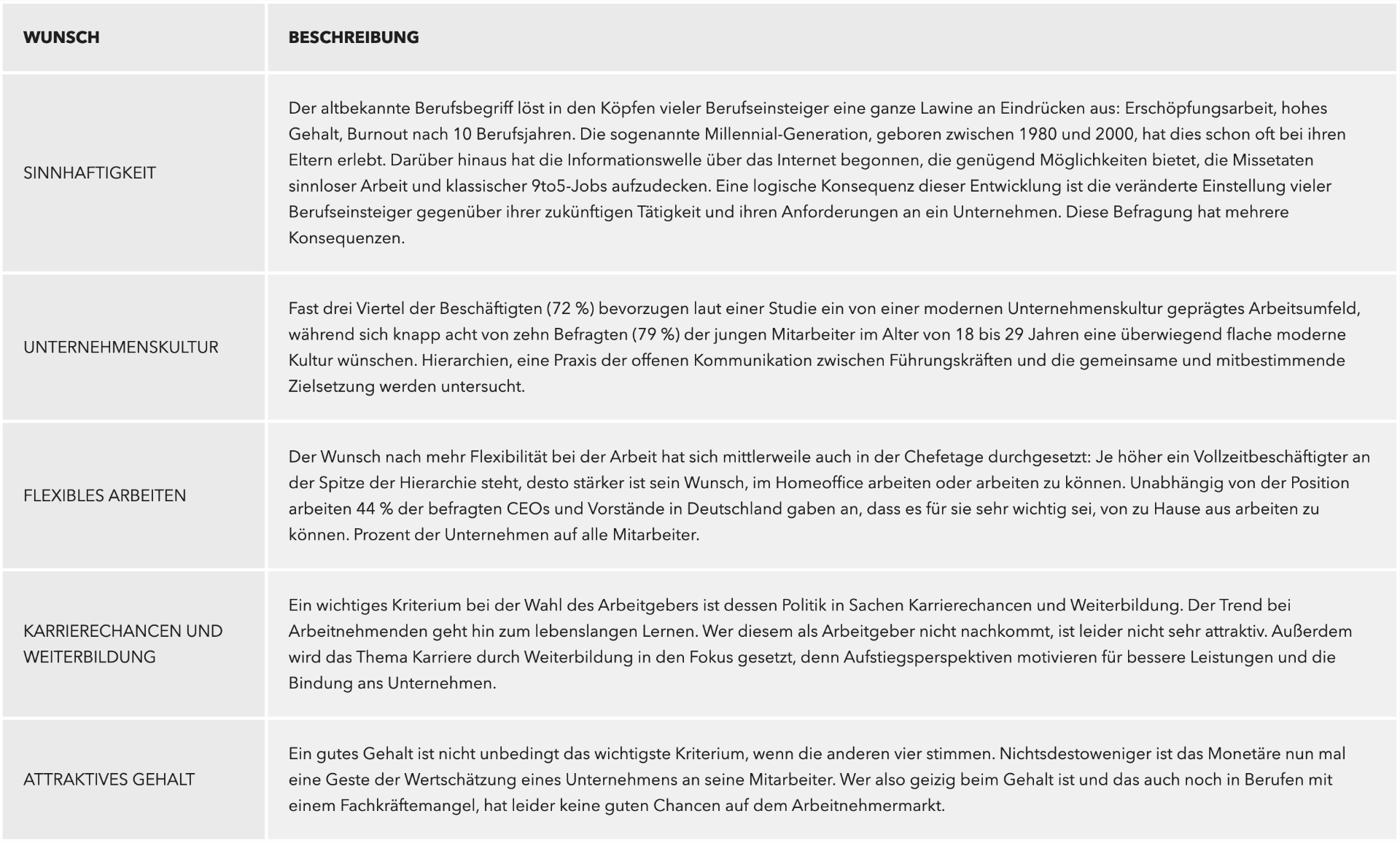 Welche Wünsche gibt es überhaupt an den potenziellen Arbeitgeber: