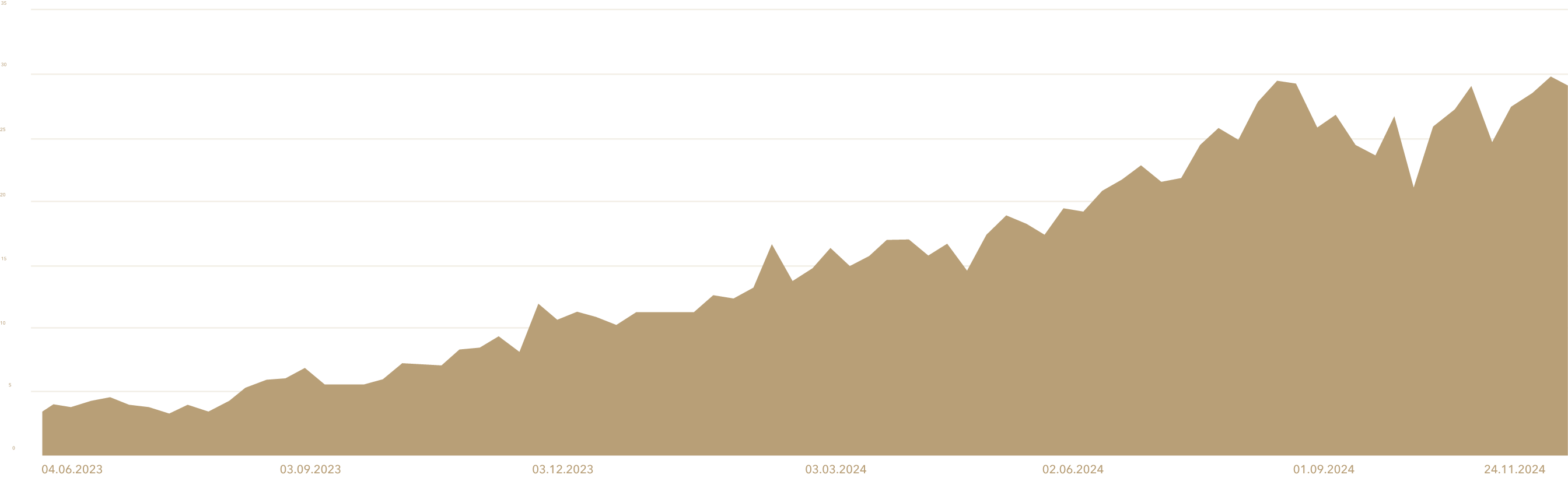Die Entwicklung der Sichtbarkeit von 3,27 auf 28,93 innerhalb von 16 Monaten zeigt eindrucksvoll, was mit einer klaren Strategie und kontinuierlichem Feintuning möglich ist. Durch datenbasiertes Arbeiten und laufende Optimierung der Keyword-Strategien konnten wir bestehende Rankings festigen und neue Chancen erschließen.