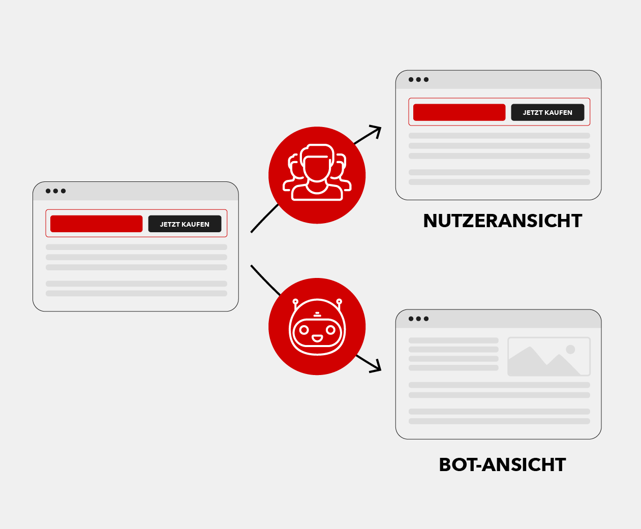 Cloaking funktioniert über Erkennungssysteme, die analysieren, wer auf eine Website zugreift – etwa anhand des User-Agents oder der IP-Adresse. Erkennt das System einen Bot, wird eine speziell für Webcrawling optimierte Version ausgespielt: lange Texte, strukturierte Keyworddichte, interner Linkaufbau. Für echte Nutzer:innen hingegen erscheint ein optisch reduziertes Design mit anderen Inhalten. Zwei Versionen, ein Ziel: maximale Sichtbarkeit – mit Methoden, die längst als problematisch gelten.