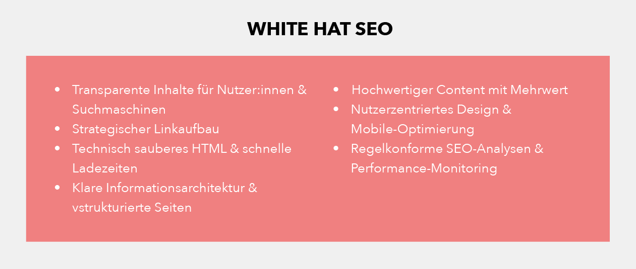 Du willst bei Google ganz oben stehen und langfristig Kund:innen gewinnen? Dann brauchst du eine SEO-Strategie, die Vertrauen schafft und auf Qualität setzt. Bei den SUCHHELDEN zeigen wir dir, dass SEO für Google auch ganz ohne Cloaking funktioniert. Als erfahrene Online-Marketing-Agentur entwickeln wir für dich Konzepte, die zu deinem Geschäftsmodell passen: klare Informationsarchitektur, suchintelligenter Content und technische Performance, die den Google-Richtlinien entspricht. So entsteht ein Fundament, das deine Sichtbarkeit im Web stetig wachsen lässt und gleichzeitig das Vertrauen deiner Zielgruppe stärkt – ohne Risiken, aber mit messbarem Fortschritt und transparenter Umsetzung.