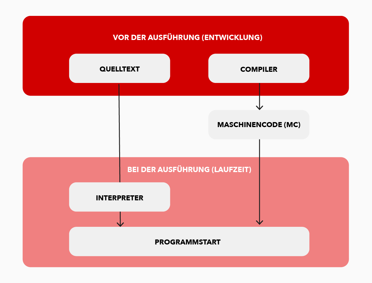 Im Gegensatz dazu verarbeitet ein Interpreter den Quelltext schrittweise – Zeile für Zeile, während das Programm läuft. Dadurch ist er besonders in der Entwicklung flexibel, da Änderungen sofort getestet werden können. Sprachen wie Python oder JavaScript arbeiten oft interpreterbasiert. Moderne JavaScript-Engines nutzen dabei die Just-in-Time-Kompilierung (JIT): Während der Code ausgeführt wird, optimiert das System einzelne Abschnitte in Maschinencode. So wird die Performance deutlich gesteigert, ohne die Vorteile eines Interpreters aufzugeben – eine Methode, die Webentwicklung spürbar beschleunigt.