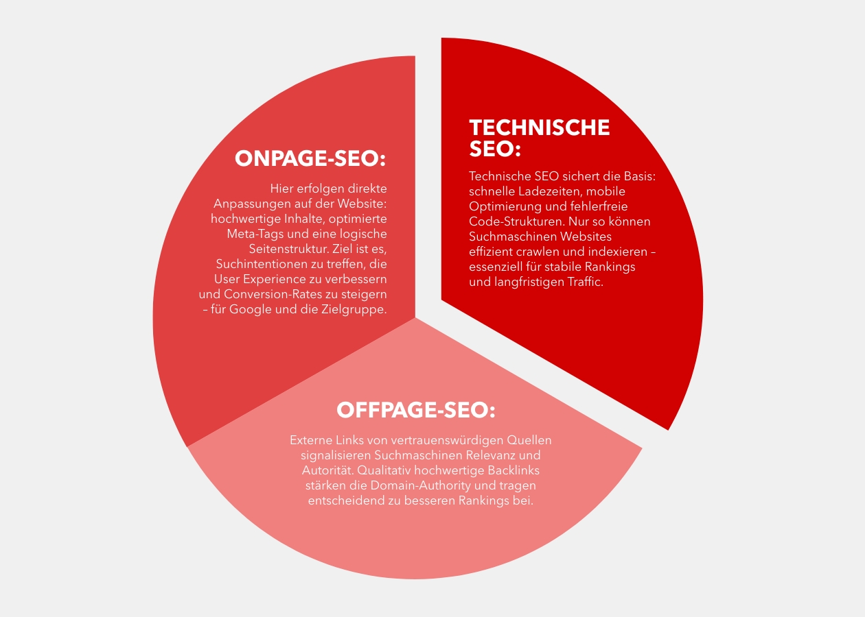 Wir decken alle SEO-Bereiche ab: Technische SEO stellt sicher, dass deine Website fehlerfrei läuft und für Suchmaschinen optimal lesbar ist. Onpage-Maßnahmen verbessern Inhalte, Struktur und UX. Offpage-Optimierungen wie Linkaufbau stärken die Autorität deiner Website. So schaffen wir eine solide Basis für bessere Rankings und nachhaltigen Erfolg.