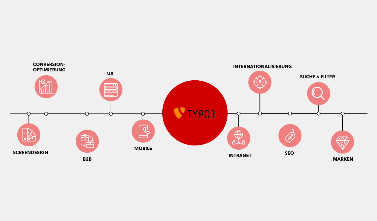 Ob eine einfache Website oder ein umfangreicher Online-Shop mit zahlreichen Artikeln, wir setzen alles zur Ihrer Zufriedenheit mit Typo3 um. Wenn Sie möchten, können Sie natürlich auch selbst die Content-Pflege und Erstellung neuer Inhalte übernehmen und einstellen. Es bietet sich aber an, auf eine professionelle Agentur zurückzugreifen, zumal Sie sich so jede Menge Zeit sparen.
