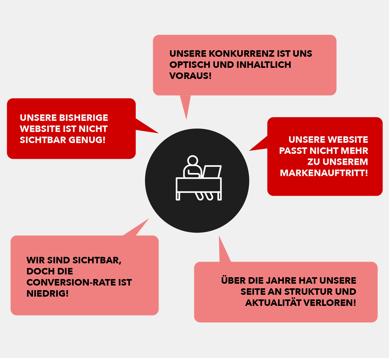 Du fragst dich, ob ein SEO-Website-Relaunch bzw. eine Beratung in deinem Fall Sinn macht? Ein Neustart ist immer dann eine gute Idee, wenn dein aktueller Webauftritt nicht mehr zu deinem Unternehmen, deiner Marke oder deinen Zielen passt. Vielleicht ist dein Design in die Jahre gekommen, deine Website nicht mobilfreundlich oder deine technische Basis fehlerhaft. Auch neue Markenstrategien oder ein verändertes Geschäftsmodell können Gründe sein, deine Online-Präsenz durch einen SEO-Relaunch komplett neu zu denken.